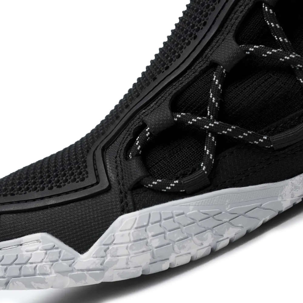 - Construcción tipo calcetín elástico en tejido 3D con refuerzos de goma cosidos para un ajuste flexible, mayor estructura y resistencia a la abrasión.