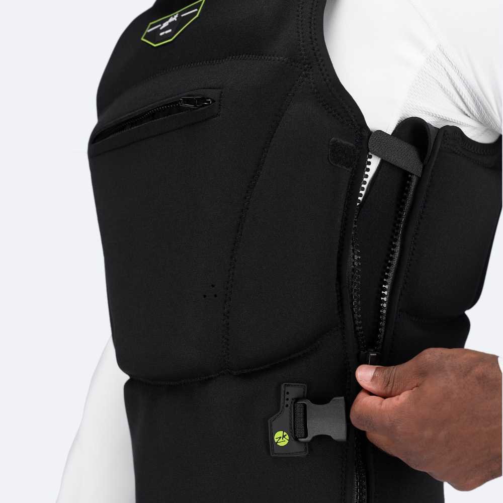 El chaleco Kollition™ X Impact PFD de Zhik para deportes acuáticos de alta velocidad es la fusión perfecta entre protección y agilidad. Combina placas integradas en pecho y columna para una protección contra impactos excepcional sin limitar flexibilidad. Su corte alto es compatible con arneses de Wing, Kite y Vela, ofreciendo un ajuste de «segunda piel» con certificación completa de flotabilidad 50N.