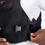 Los paneles laterales de neopreno mejoran el ajuste y el confort, mientras que la banda interior antideslizante ayuda a mantener el chaleco en su sitio incluso en condiciones exigentes o con mucho movimiento.