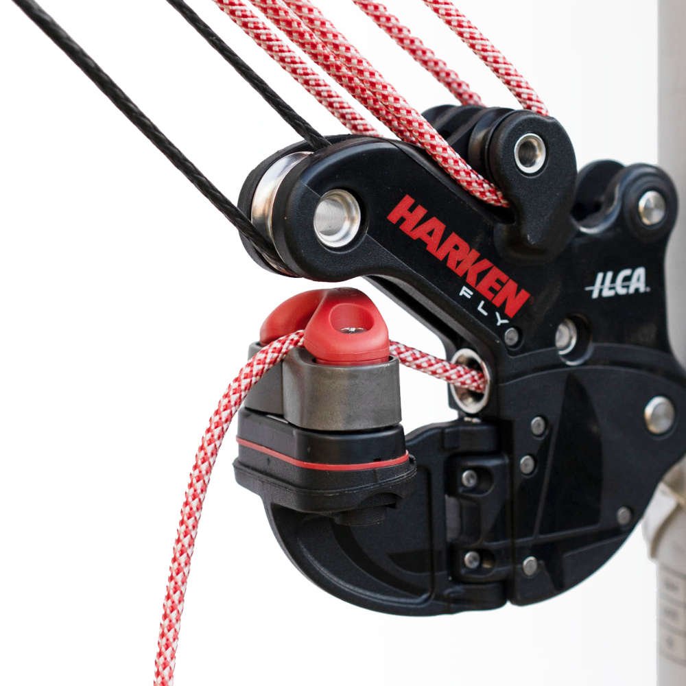 Ya está aquí la nueva polea de trapa Harken para ILCA. El sistema más usado en el mundo, ahora un 21% más ligera y con mayor potencia de cazado. Fabricada en Carbo reforzado, permite configurar desmultiplicaciones de 15:1 o 12:1 con mínima fricción gracias a sus roldanas Fly de mayor diámetro.