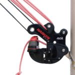 El sistema puede configurarse con una desmultiplicación de 15:1 o 12:1, lo que permite al tripulante ajustar la cantidad de cabo de control en la bañera manteniendo un ajuste de la contra suave y preciso, incluso en condiciones de viento fuerte. La ueva base de trapa Harken está fabricada con compuesto de nailon Carbo reforzado con fibra de Harken, lo que proporciona una excelente rigidez, resistencia a los impactos y una reducción de peso del 21% en comparación con la versión anterior de acero inoxidable.
