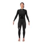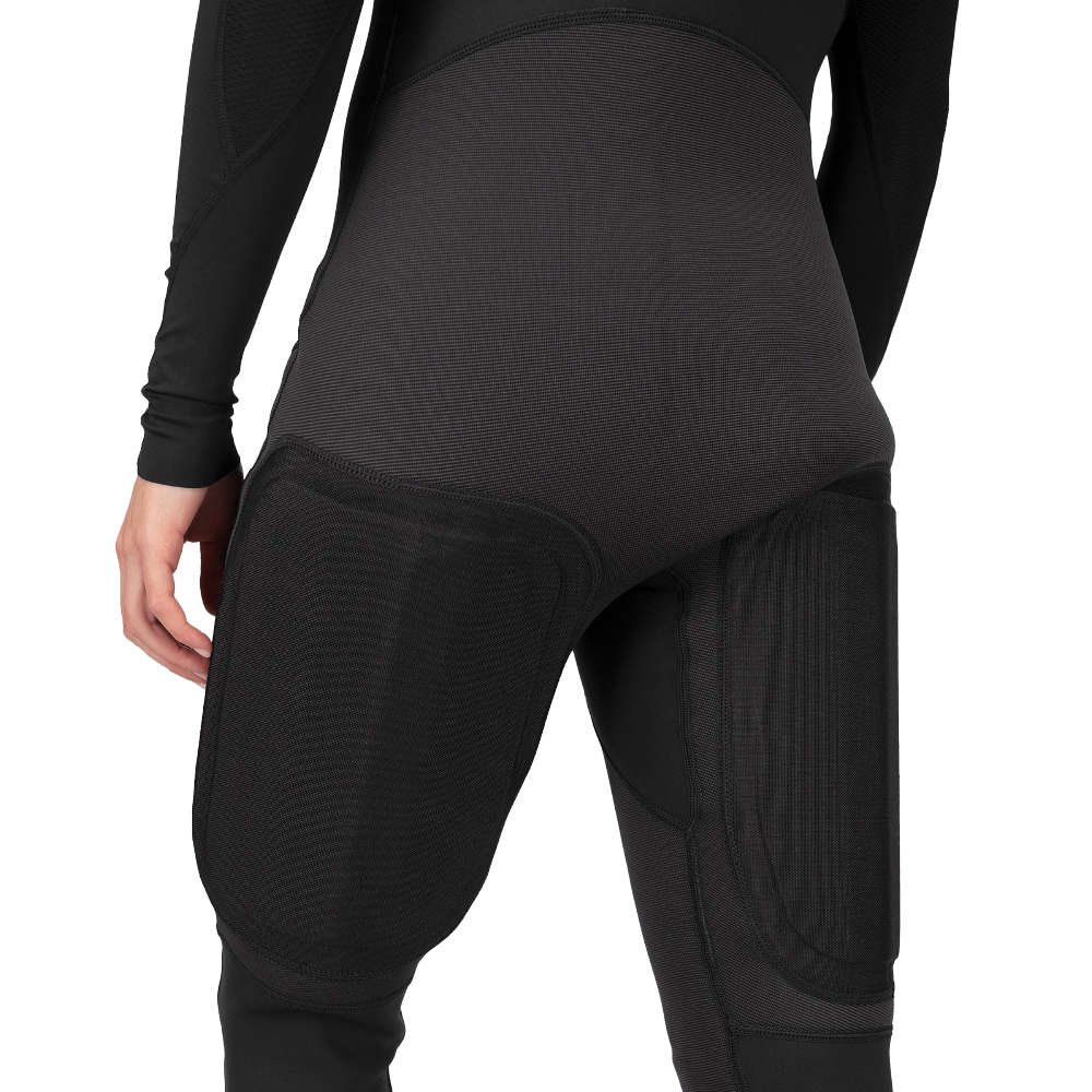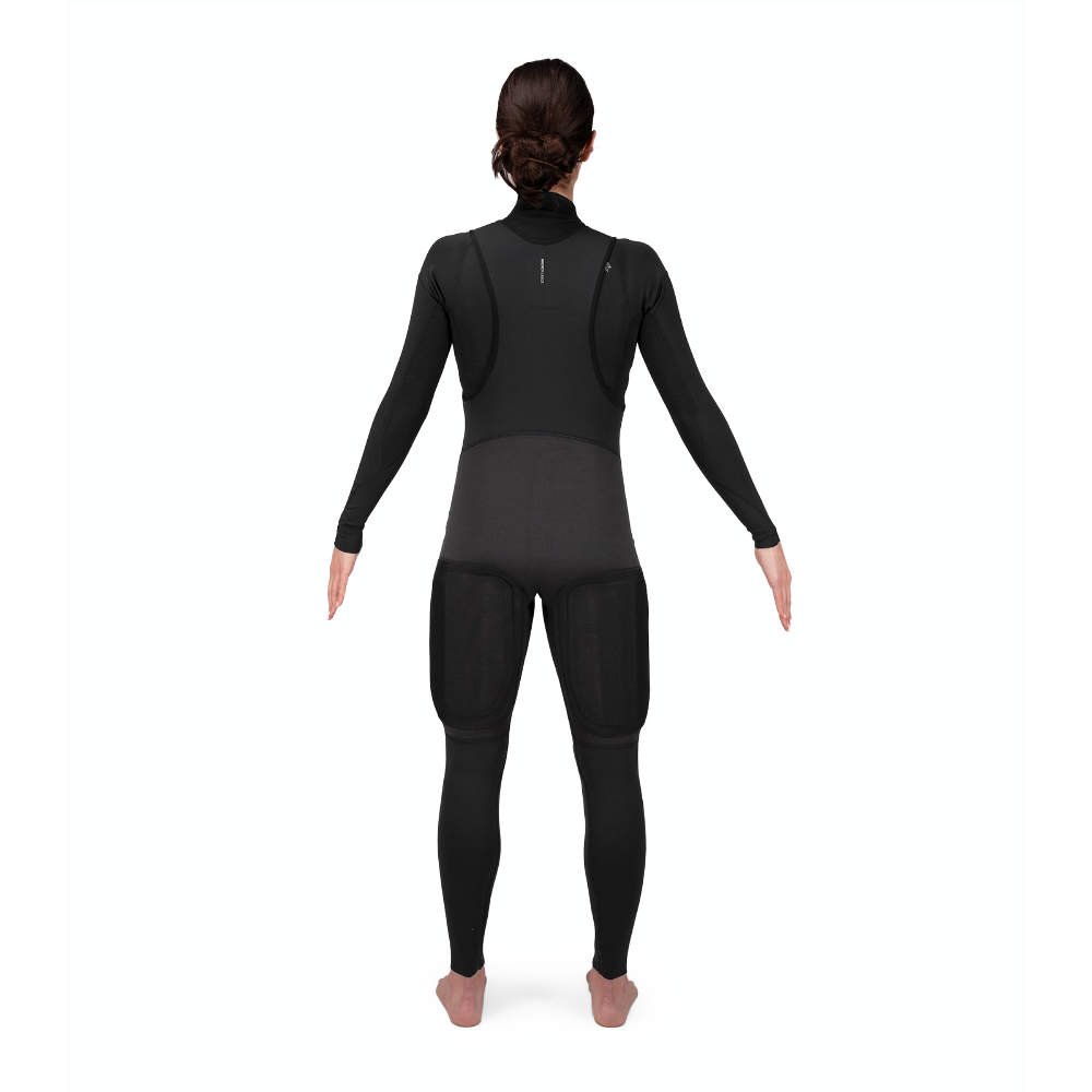 El traje está reforzado en las zonas de mayor desgaste y ofrece diferentes ajustes para adaptarse mejor al cuerpo. Combina comodidad, flexibilidad y soporte firme al navegar colgada, permitiendo mantener una posición eficiente durante más tiempo y navegar con mayor confianza.